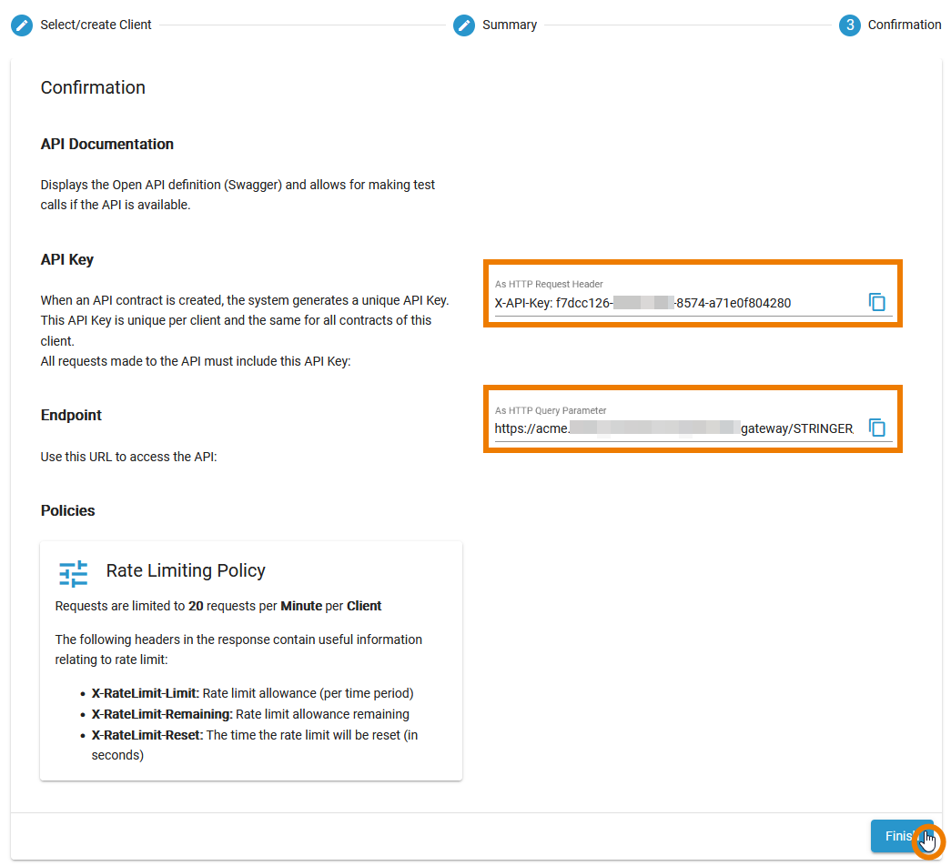 David Stringer wants to enable the customer Spring Corp. to consume his PrivateEchoAPI with the higher rate limit. Therefore, he creates a client for the customer.