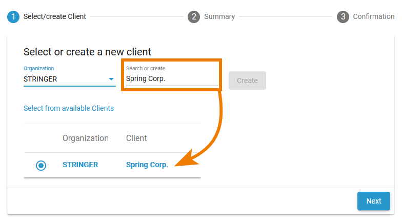 Your new client is also displayed in tab Clients of organization STRINGER.