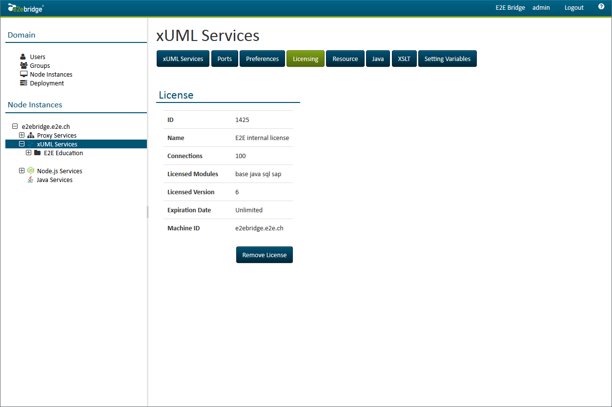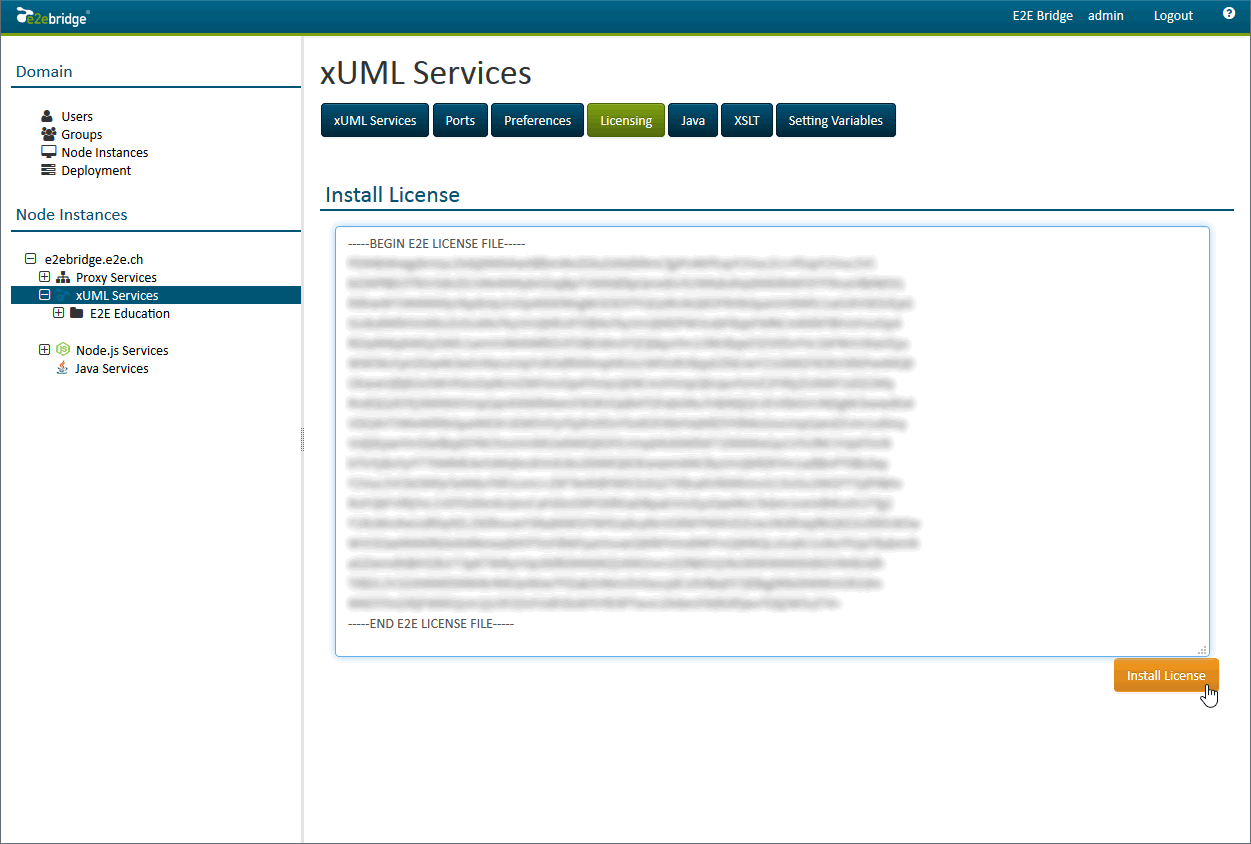 Before an xUML service can be started on the Bridge, the E2E License Key has to be installed.