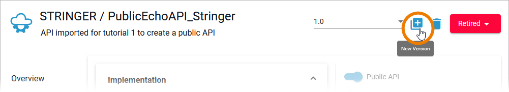 You can also retire the API. On the details page of the API, open the status drop-down and select Retire: