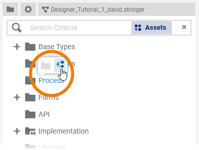 Go to the Service panel. Hover over the Process folder of your service and use the quick action Add Model to create a new BPMN model Order_approval_1: