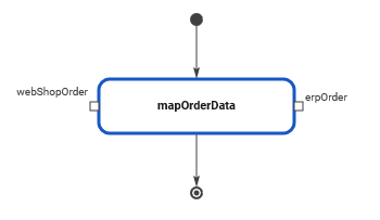Select operation mapOrderData from library ERPOrderInterface > ERP > ERPOrder. Drag and drop the operation to the action flow in the execution canvas: