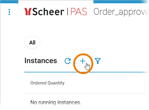 The Applications start page is displayed. It lists all available processes in this service. Hover over the name of your service to display the quick start icons. Click Open instance list to display the instance list of your process: