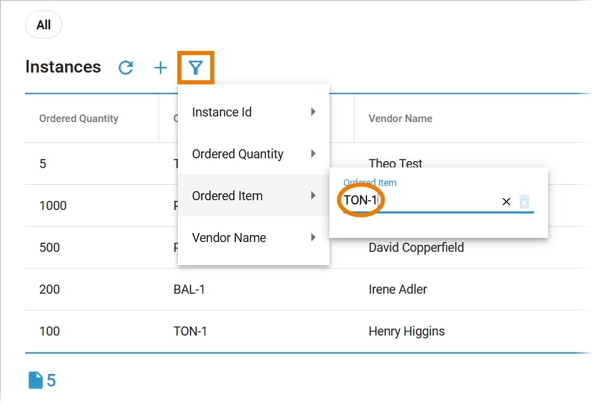 The filter is displayed on top of the instance list. It will be applied until you delete it: