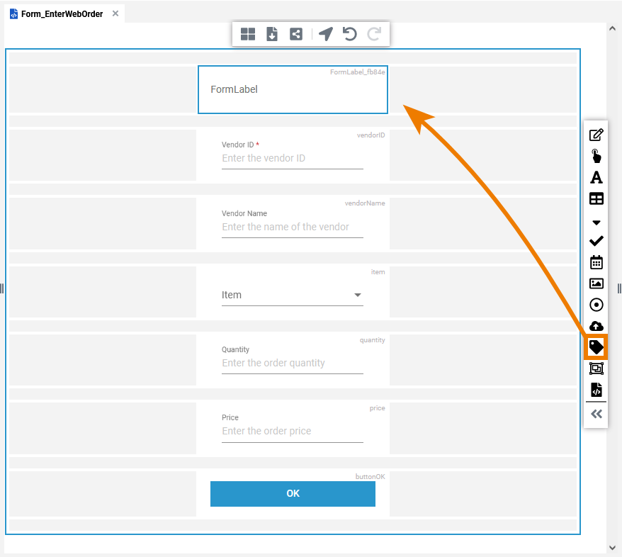 To test this, go back to the Designer and open Form_EnterWebOrder. Enter a new label element: