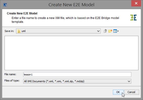 Replace the file name BuilderUML with lesson1. The file will be saved in the default folder uml of the Builder project Education you have created before. Click OK: