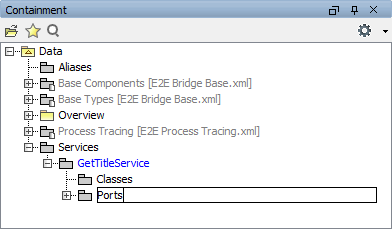 Rename the package to GetTitleService and press the Enter key in order to confirm the change. Packages on this level in the containment tree will contain class diagrams, activity diagrams, and port type definitions: