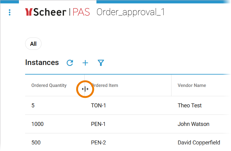 To check if the defined content is correctly displayed in your instance table, use option Plus to create some new instances: