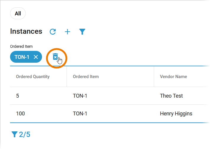 The filter is displayed on top of the instance list. It will be applied until you delete it: