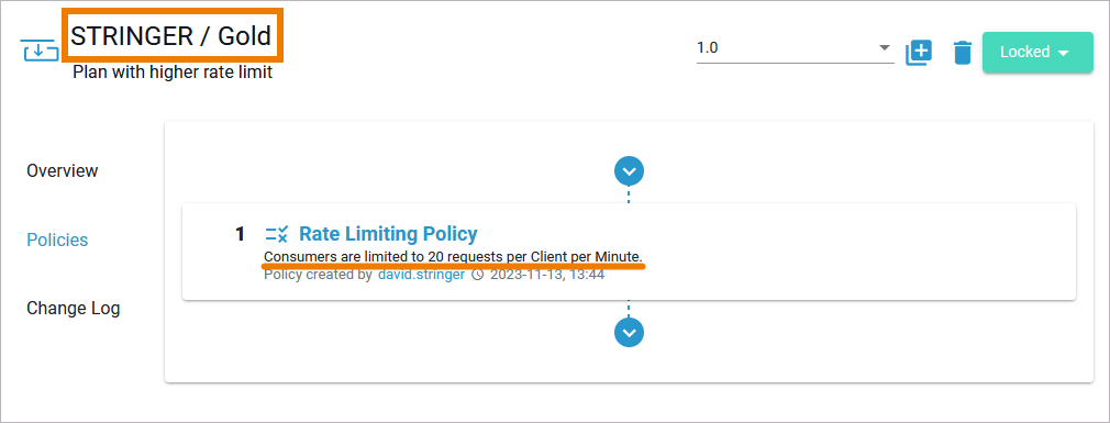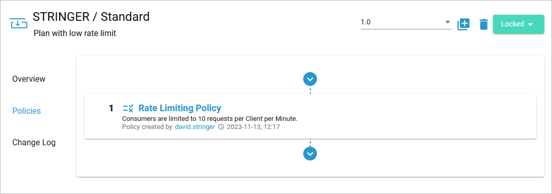 Click Next to display the summary and Save to finally attach the policy. The Rate Limiting Policy now is displayed on the plan's detail page > tab Policies: