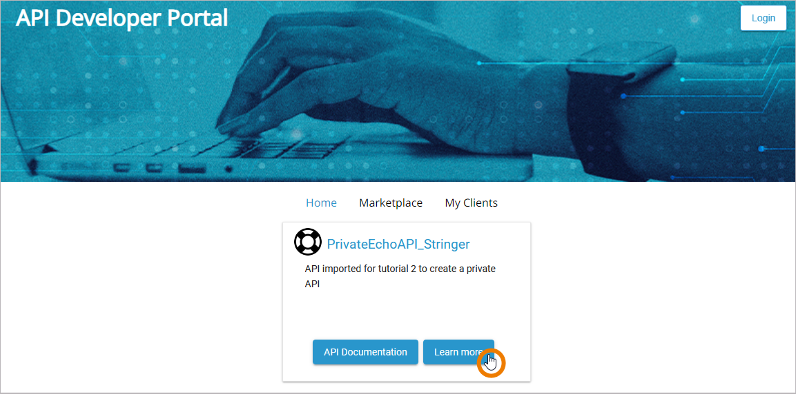 On the homepage of the ACME API Developer Portal, John Snow of customer Winter & Partners detects the PrivateEchoAPI_Stringer. He knows that David Stringer always provides helpful APIs for testing and is curious about this new API.
