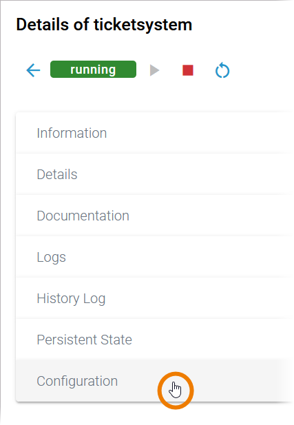 Clicking Save triggers a restart, changes in the Configuration section are directly applied to the service.