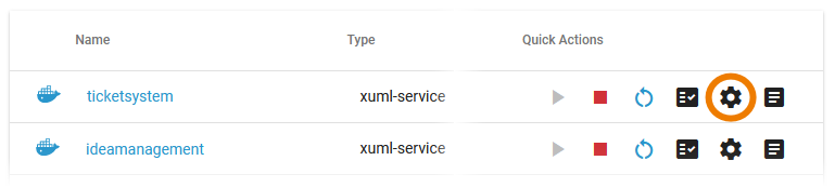 The administration application allows you to change the configuration of a Docker container. You have two options to open the configuration of a container:
