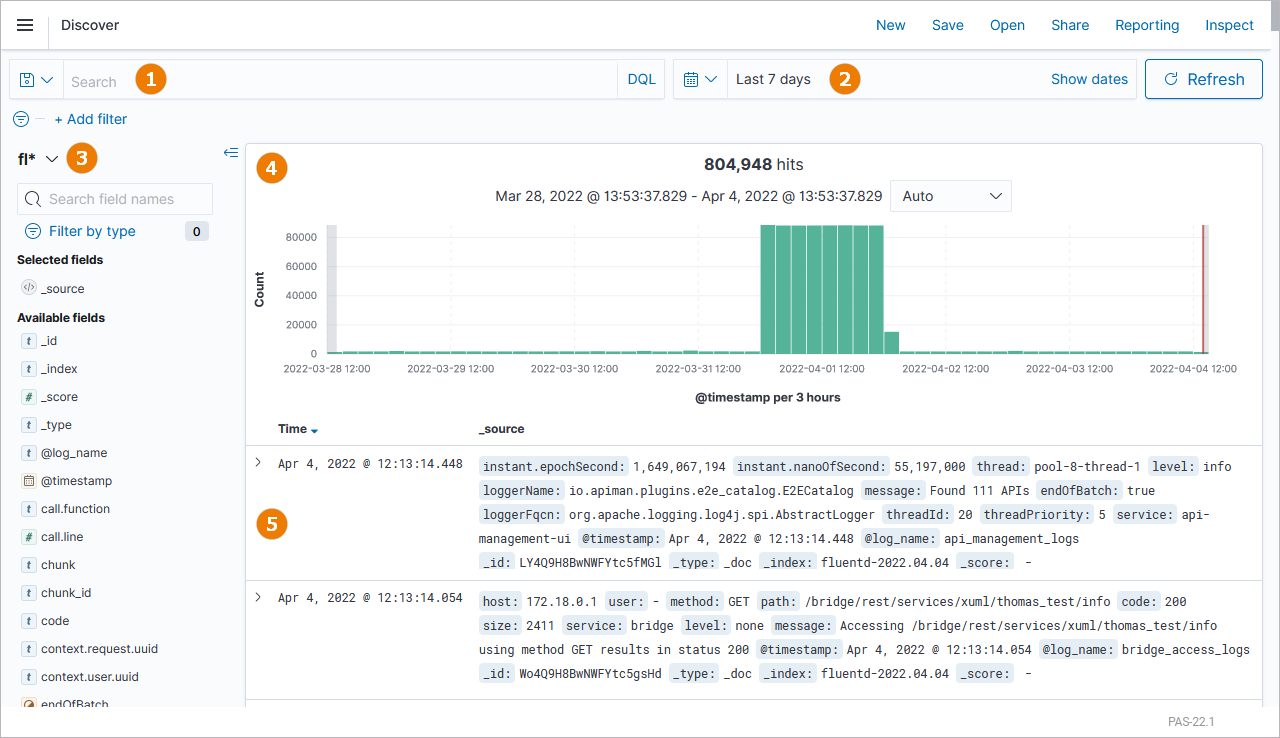 fl* | Index for logs from the PAS integration component (Bridge), API Management and legacy pas-services. |