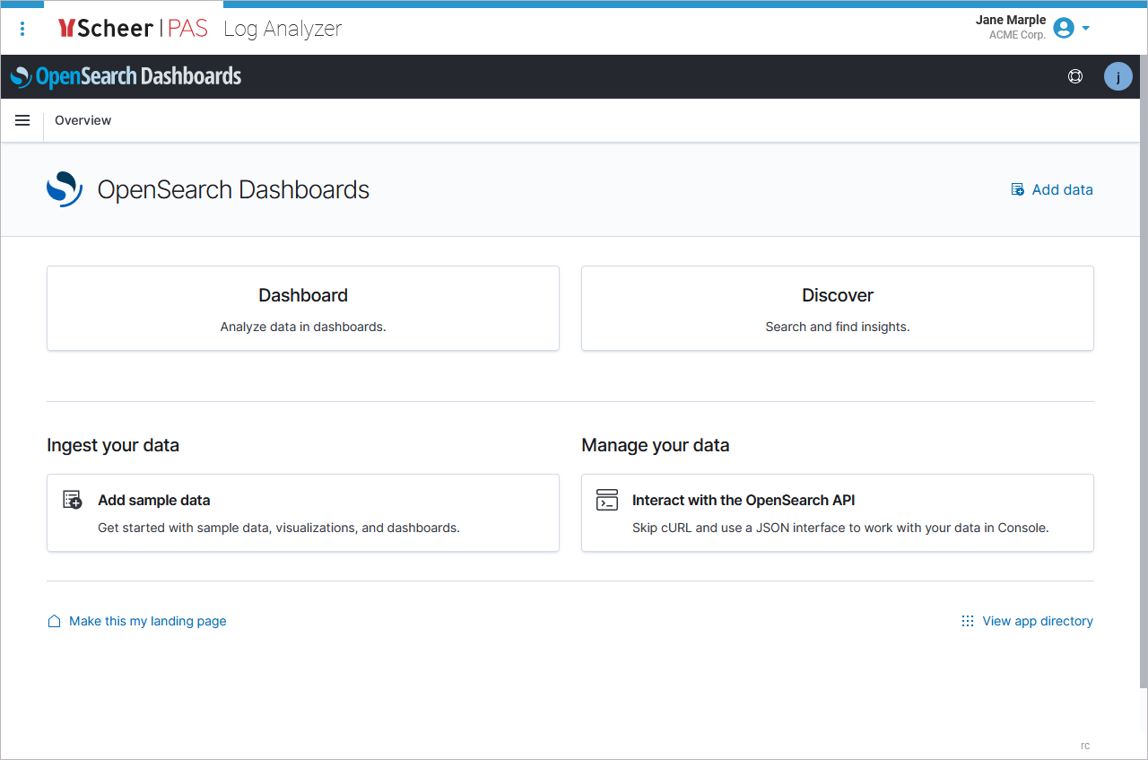 The Scheer PAS Log Analyzer uses OpenSearch as data storage and OpenSearch Dashboards to analyze the logs of all services: