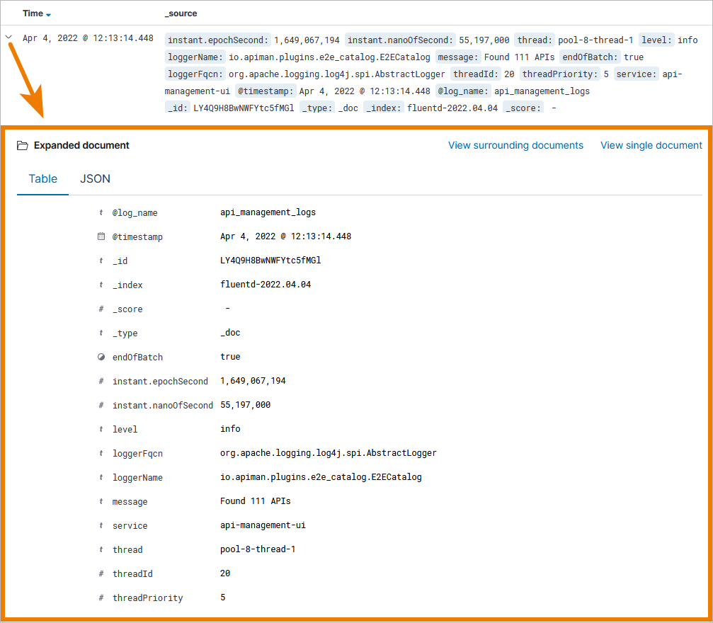 You can now inspect the service logs. If no logs are displayed, extend the time range: