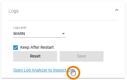 In the Logs section of the service details page, you can also use the link Open Log Analyzer to inspect logs: