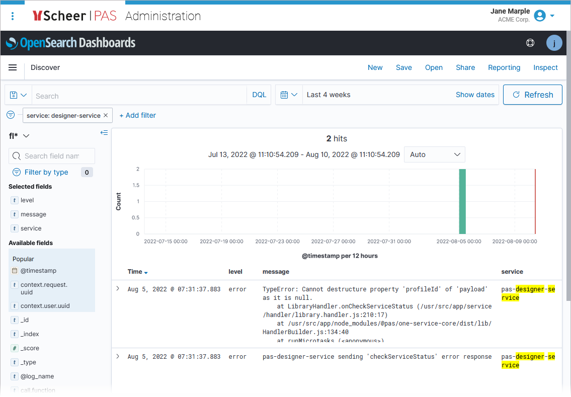 For more information about the Log Analyzer, refer to Analyzing Platform Logs.