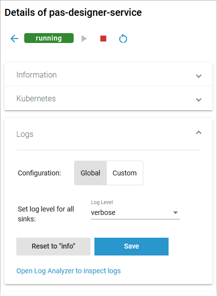 In the administration application you have the possibility to change the log level for workloads. The functionality is currently available for the following service type only: