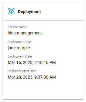 On top of the Details section, you can find the option Delete Service (refer to Deleting a Service below for further information). The boxes General, Build and Deployment contain read-only information:
