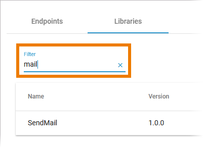 Use the filter field to search for a specific library. The content of the filter field is applied to the column Name only: