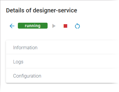 In the Configuration section you can change the configuration file of the container. The content of section Configuration depends on the service type.
