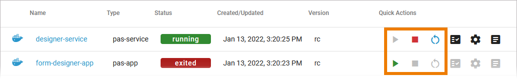 Use the quick actions to start, restart and stop a container. You can find the actions in the quick actions bar in the services' list…