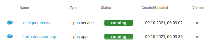 Name | Name of the service. Click on the name to access the service details page. | ![]() Indicates a Docker container. |
