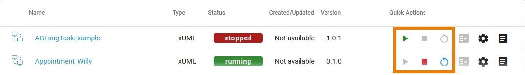 Use the quick actions to start, restart and stop a service. You can find the actions in the quick actions bar in the services' list…