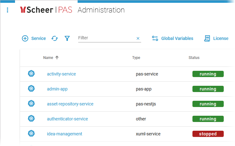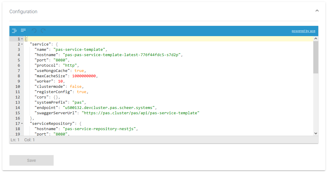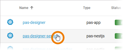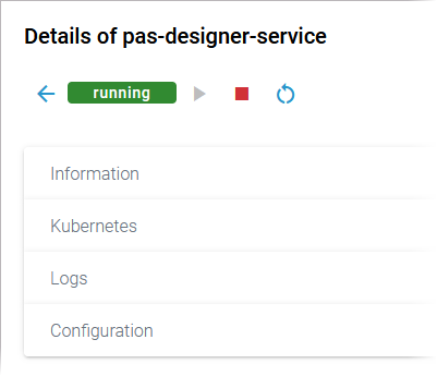 In the Kubernetes setup, it is currently not possible to modify configuration files in the Configuration section except for containerized xUML services and services of type pas-nestjs (see below):
