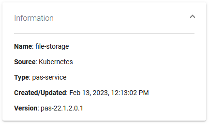 Created/Updated | Shows the date and time of the last update of the service. If the service has not been updated yet, its creation date is displayed. | Datetime in format dd.mm.yyyy, hh:mm:ss |