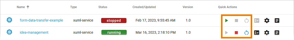 Use the quick actions to start, restart and stop a workload. You can find the actions in the quick actions bar in the services' list…