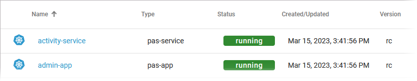 Name | Name of the service. Click on the name to access the service details page. | ![]() indicates a Kubernetes workload. |