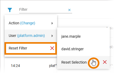 Use option Reset Filter in the main filter window to reset all selected filters. In the filter option window, you can also reset the selection: