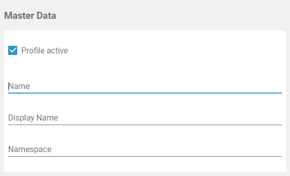 You can manage the basic data of a profile in the Master Data section. Only Name is mandatory. Display Name and Namespace are optional: