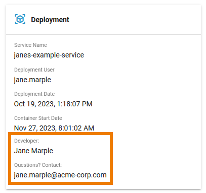 Use this option to add technical labels for the container. The labels are added to the container and are also displayed later in the service details: