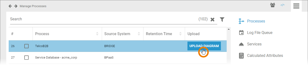 The Upload Diagram button allows you to add a BPMN diagram to Bridge processes.
