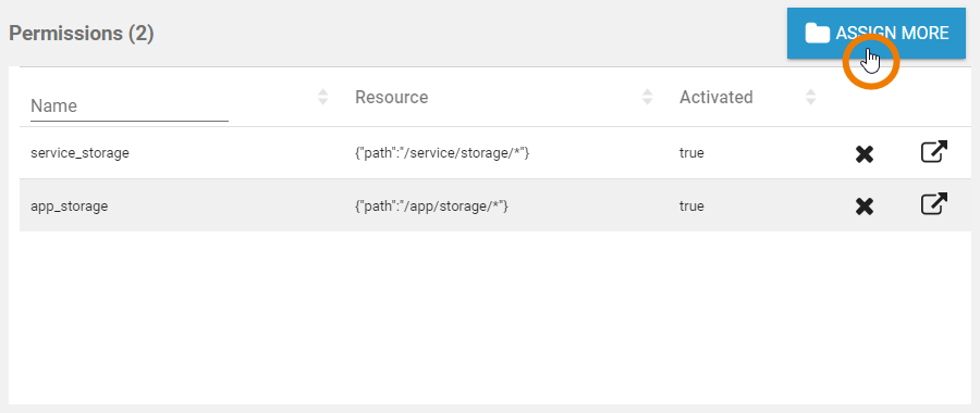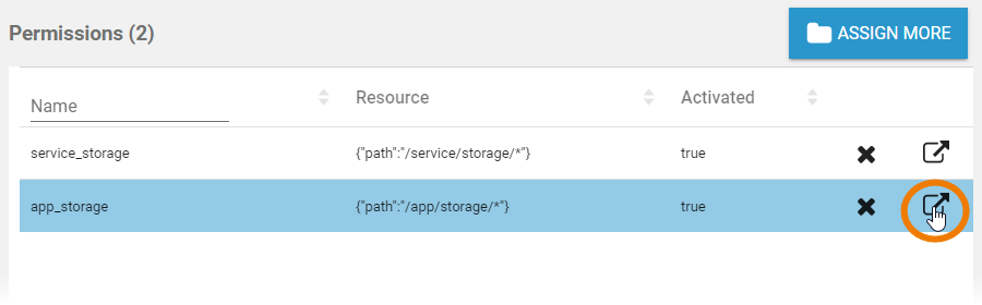 Administrators can also use the permissions section to switch directly to the corresponding permission data sheet to edit a permission. To do so, use option Open: