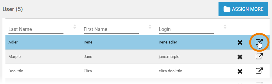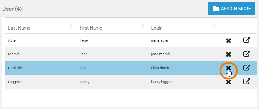 You can remove already assigned users by using option Delete. The user will then be removed from the profile: