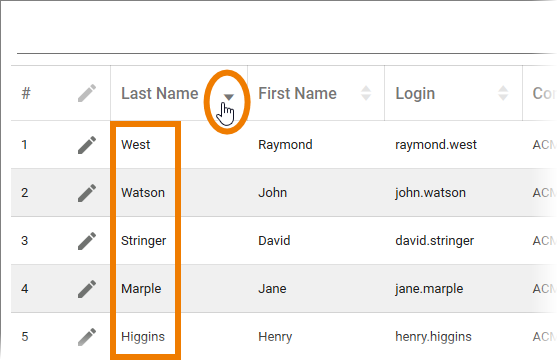 You can sort the content of each list in the content area. Therefore, just click the arrow icons of the column you want to sort the list by: