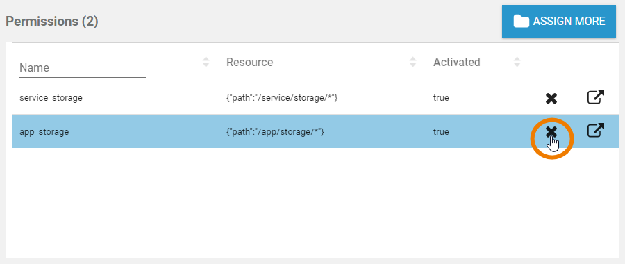 You can delete already assigned permissions by using option Delete. Access to the corresponding URL will then be removed from the profile: