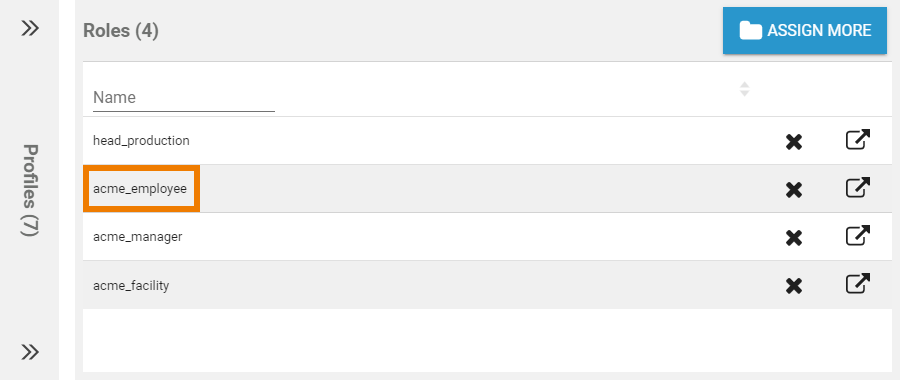 The list of available profiles will open. Use the filter to search for the profile you wish to assign. In the footer you will find the profiles that have already been assigned to this user: