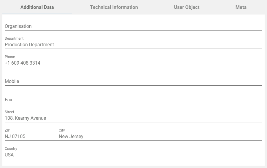 In the Additional Data section, you can insert complementary data of the user in question, for example postal address or contact numbers: