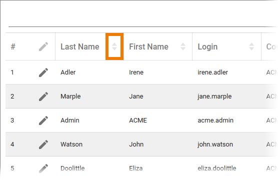 You can sort the content of each list in the content area. Therefore, just click the arrow icons of the column you want to sort the list by: