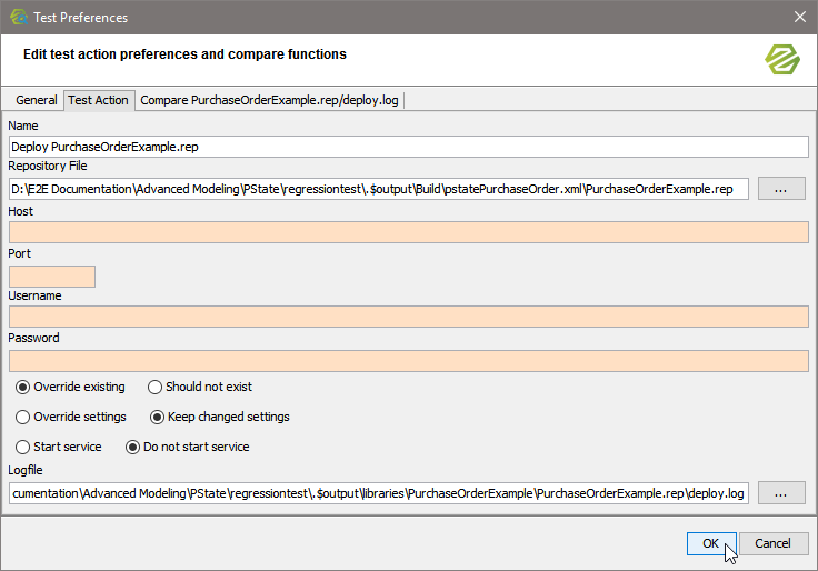 Enter the path to the repository to be deployed or browse for it. Make sure that you select the path of the repository you build with your build test. It should read something like ...\PState\regressiontest\.$output\Build\pstatePurchaseOrder.xml\PurchaseOrderExample.rep: