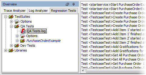 This logfile resides in folder regressiontest/log and will be created as soon as the test suite is run. After running the test suite containing the logfile, the logged data is displayed in the content pane: