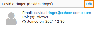Click the Edit link on top right of the user tile if you want to edit the settings of an organization member. | |
