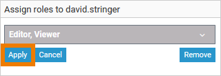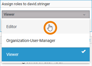 In edit mode you can now add more roles or delete already granted roles. You can only save the user settings if at least one role is assigned or deleted. | |