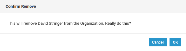 Confirm the deletion by clicking OK in the confirmation dialog and the user is removed from the organization. |