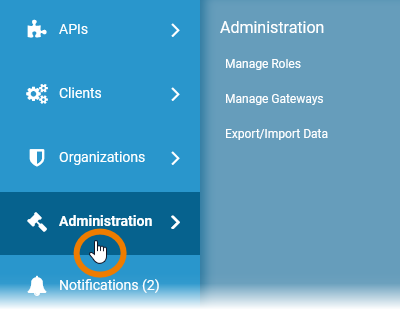 Menu item Administration is only displayed in the sidebar menu if the user has been granted administration rights. One administrator has been created during installation of API Management.